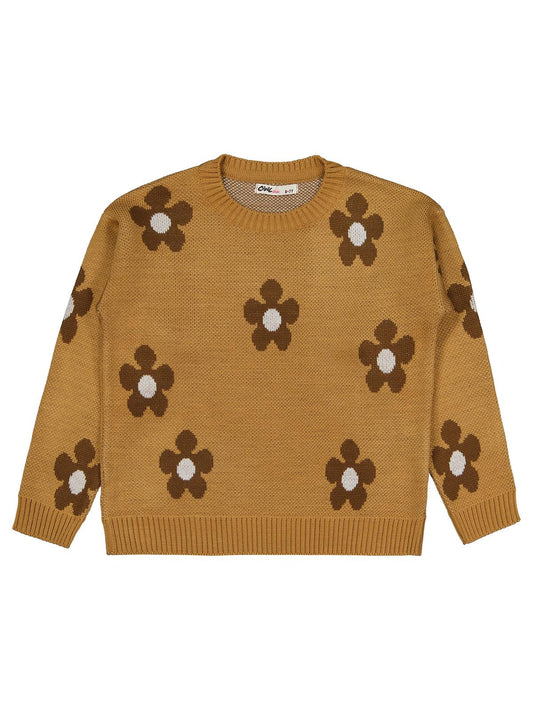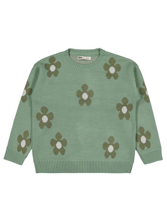Civil girls papatya desenli 6-9 yaş kazak - haki