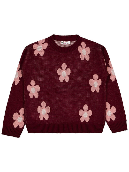 Civil girls papatya desenli 6-9 yaş kazak - bordo
