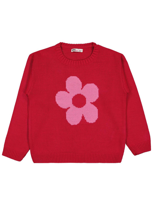Civil girls büyük çiçek desenli 6-9 yaş kazak - fusya