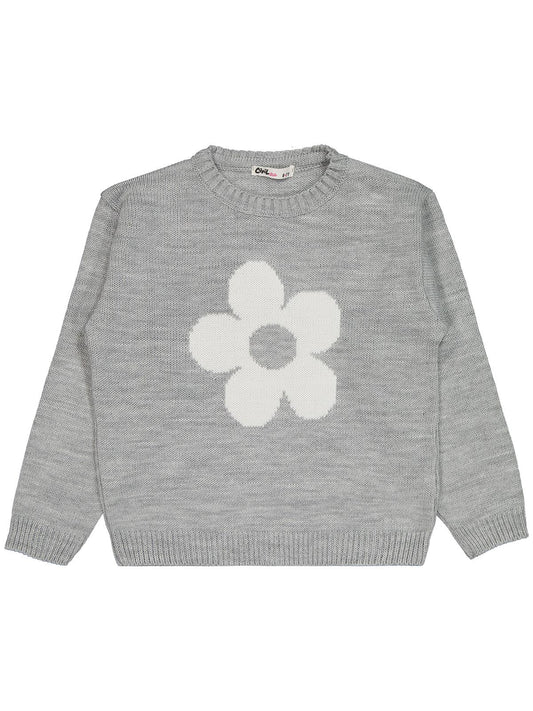 Civil girls büyük çiçek desenli 6-9 yaş kazak - gri