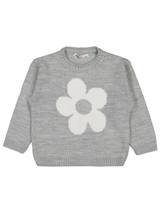 Civil girls büyük çiçek desenli 2-5 yaş kazak - gri