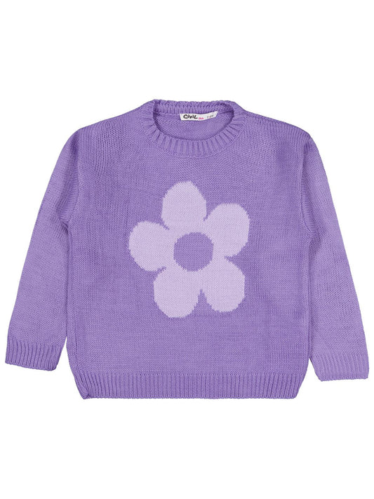 Civil girls büyük çiçek desenli 2-5 yaş kazak - lila