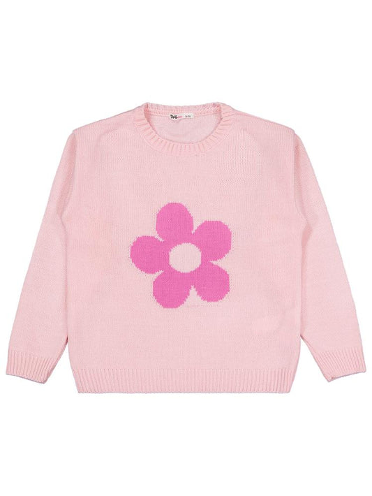 • Civil girls büyük çiçek desenli 6-9 yaş kazak - pembe