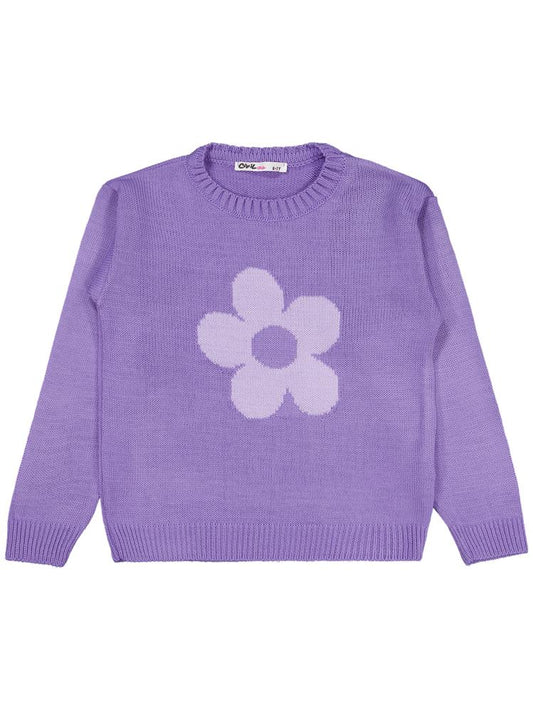 • Civil girls büyük çiçek desenli 6-9 yaş kazak - lila