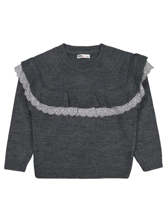 • Civil girls roba fırfırlı 6-9 yaş kazak - gri