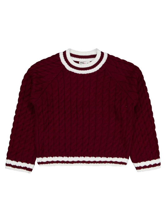 • Civil girls yaka çizgili 10-13 yaş kazak - bordo