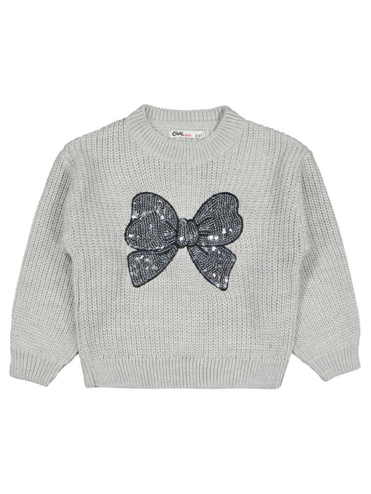 • Civil girls fiyonk nakışlı 2-5 yaş kazak - gri