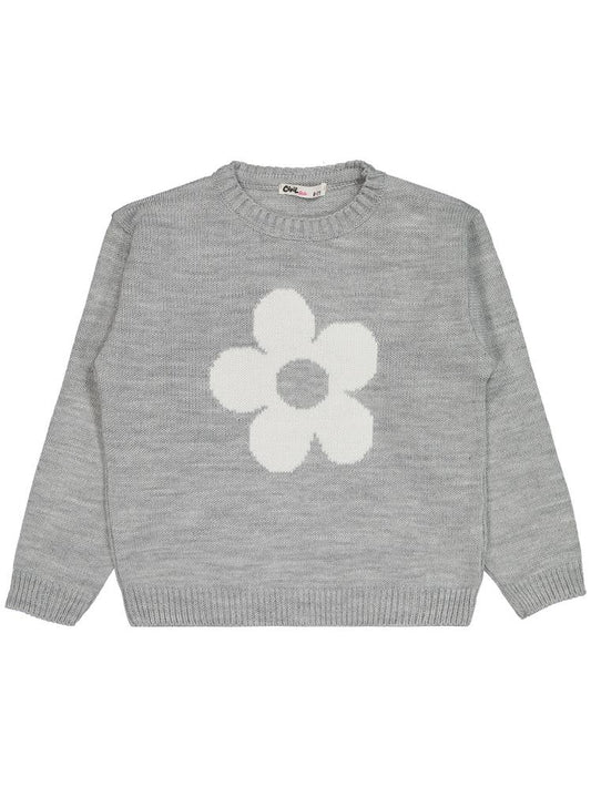• Civil girls büyük çiçek desenli 6-9 yaş kazak - gri