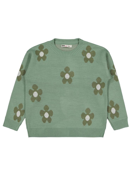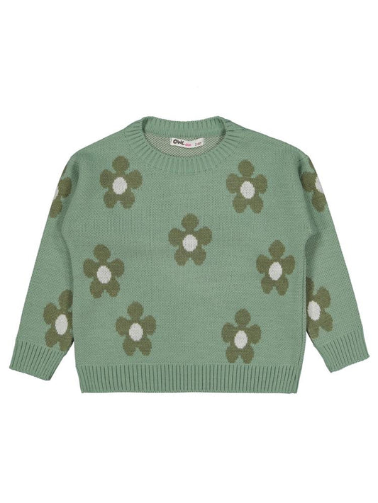 • Civil girls papatya desenli 6-9 yaş kazak - haki