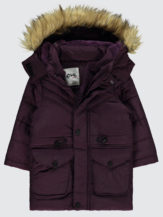 Civil girls körük cepli kuşaklı 2-5 yaş mont - lila