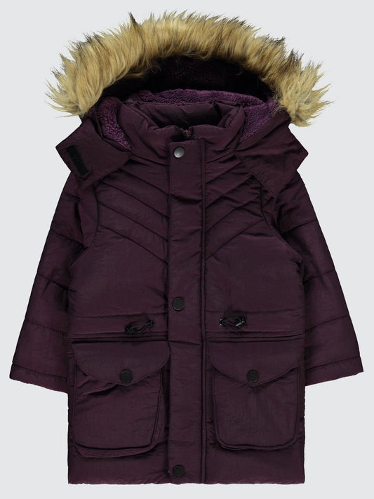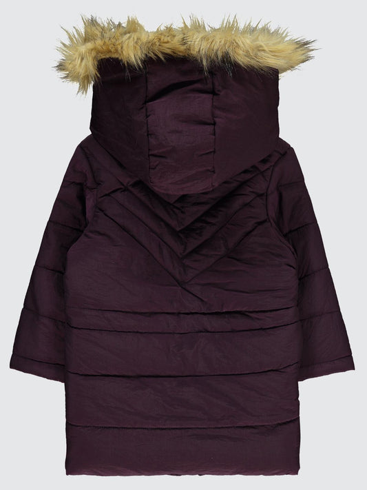 Civil girls kapşonu kürklü 2-5 yaş mont - kırmızı