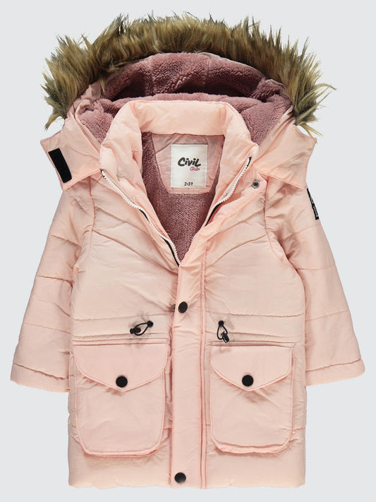 Civil girls damla desenli 2-5 yaş mont - pudra
