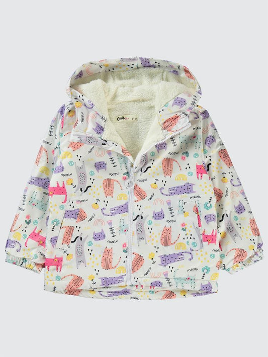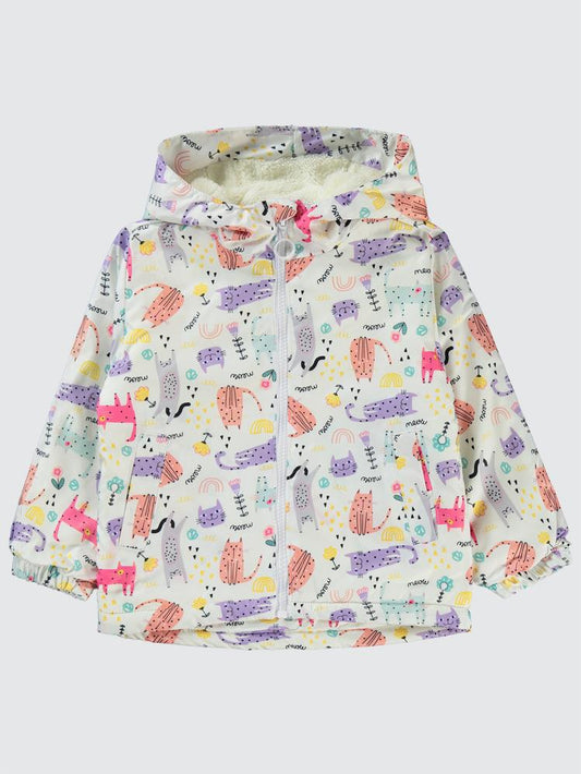• Civil girls kediler desenli 2-5 yaş yağmurluk - ekru