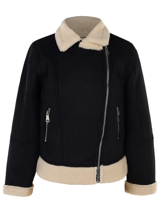 Civil girls kol ve pat pelüşlü 6-9 yaş mont - siyah