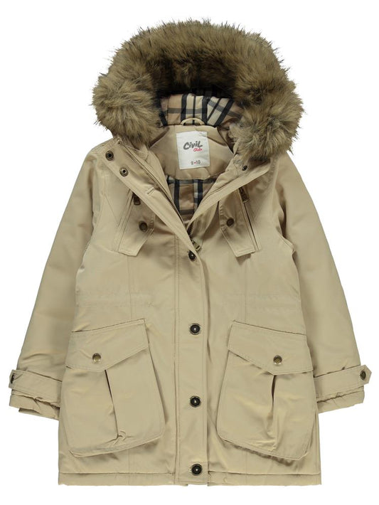 Civil girls kol ve pat pelüşlü 6-9 yaş mont - haki