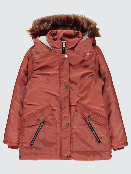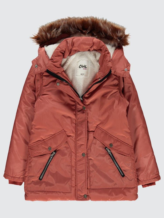 Civil girls yakası kürklü 10-13 yaş mont - siyah