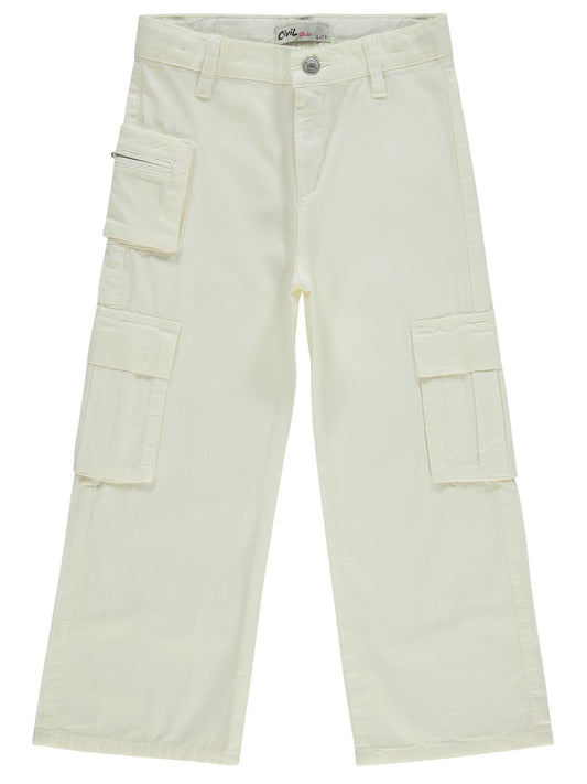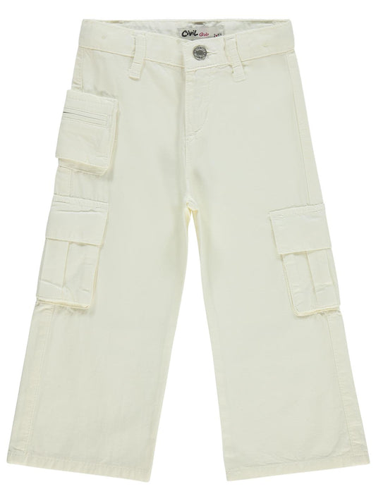 Civil girls üç cepli kargo 10-13 yaş pantolon - beyaz