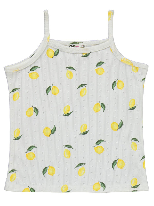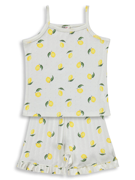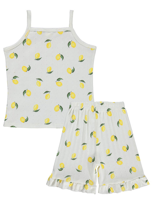 Civil girls limon desenli şortlu 6-9 yaş pijama takımı - kırık beyaz