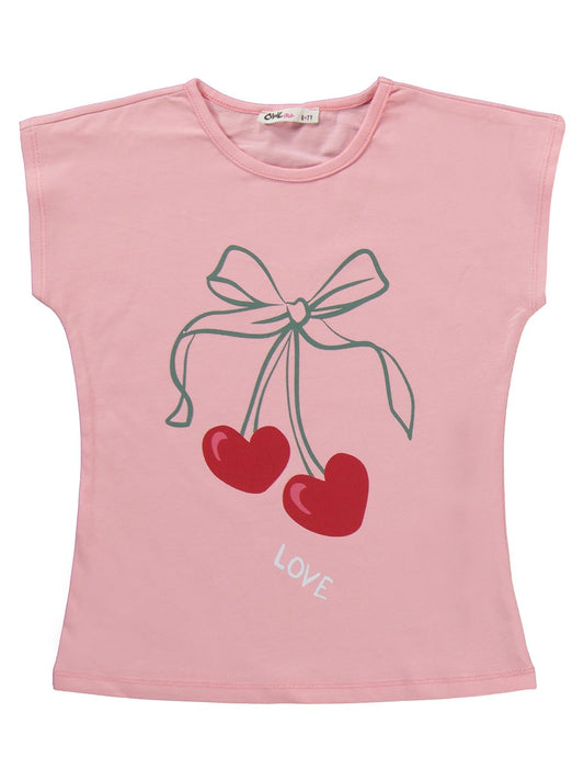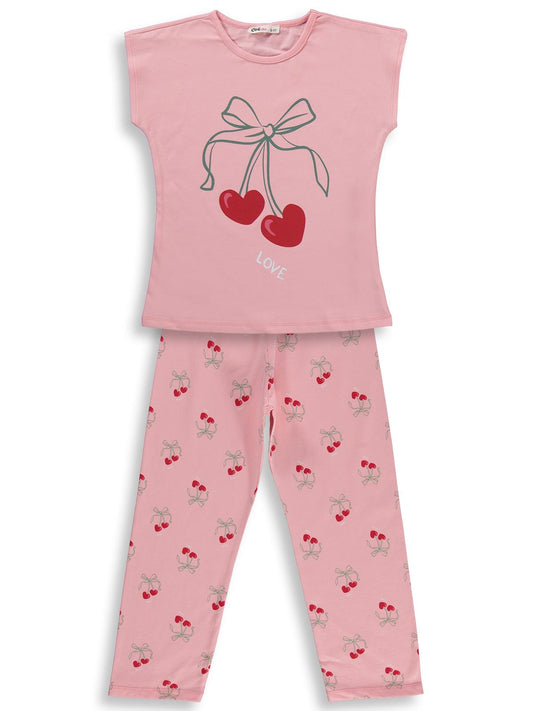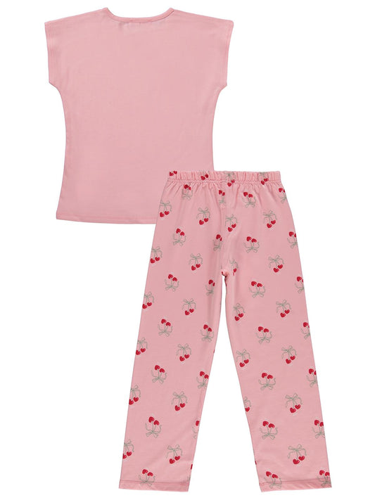Civil girls kiraz desenli 10-13 yaş pijama takımı - pudra