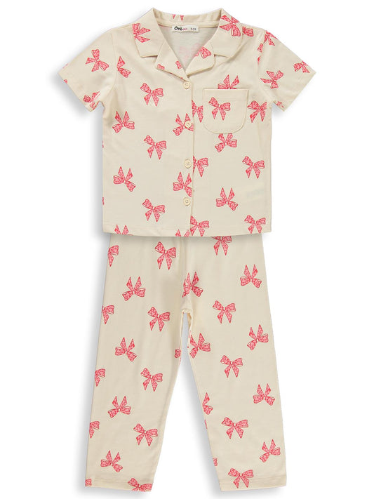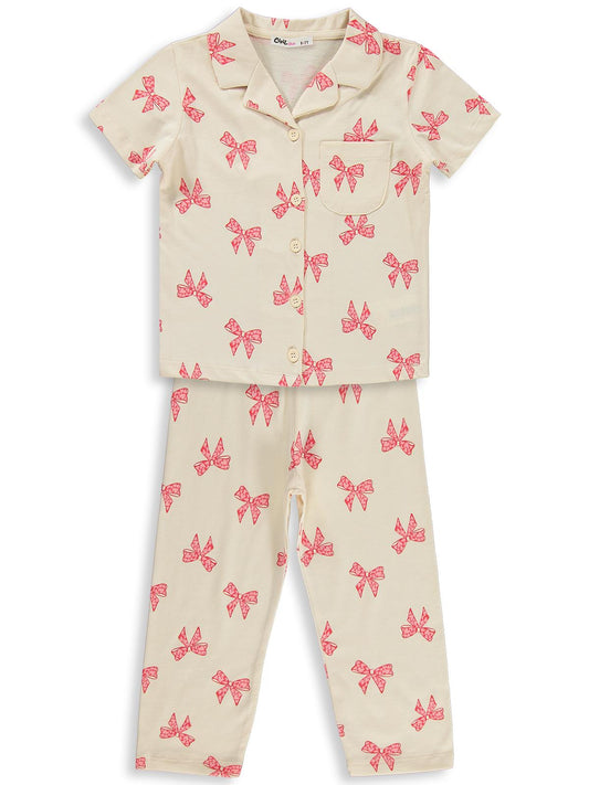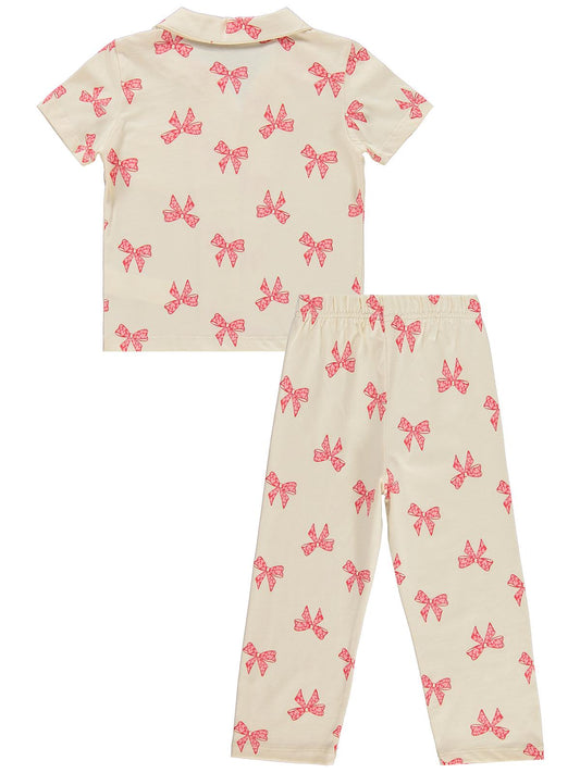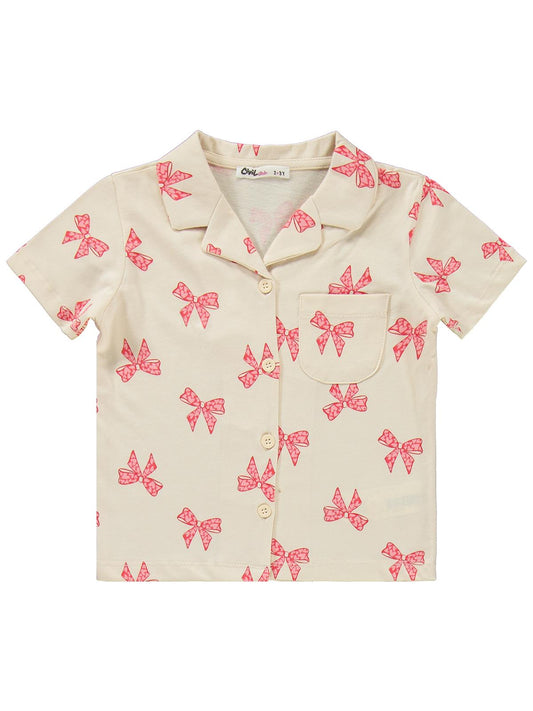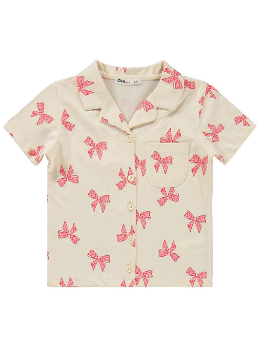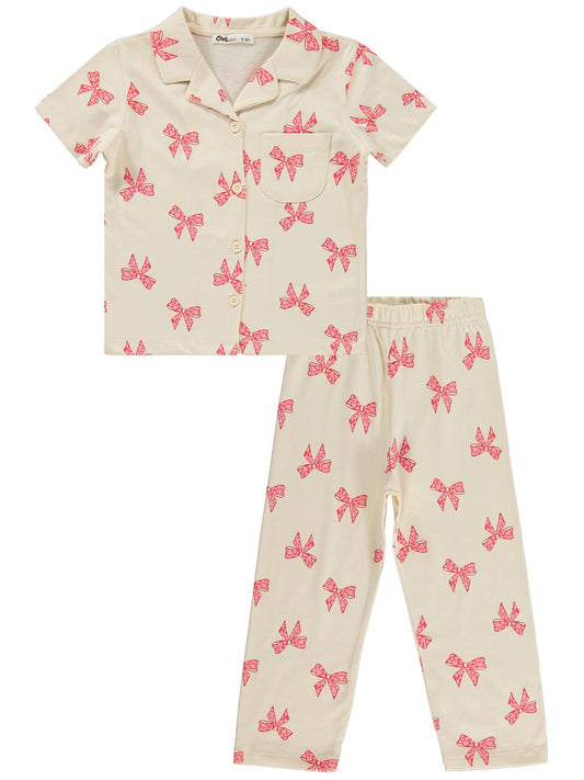 Civil girls fiyonk desenli 10-13 yaş pijama takımı - fil dişi