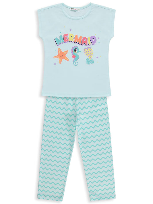 Civil girls mermaid baskılı 10-13 yaş pijama takımı - yeşil