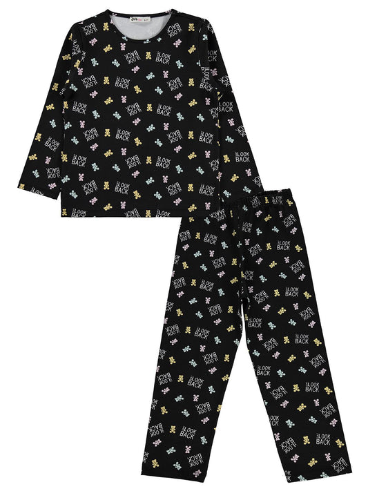 Civil girls dont look back baskılı 6-9 yaş pijama takımı - siyah