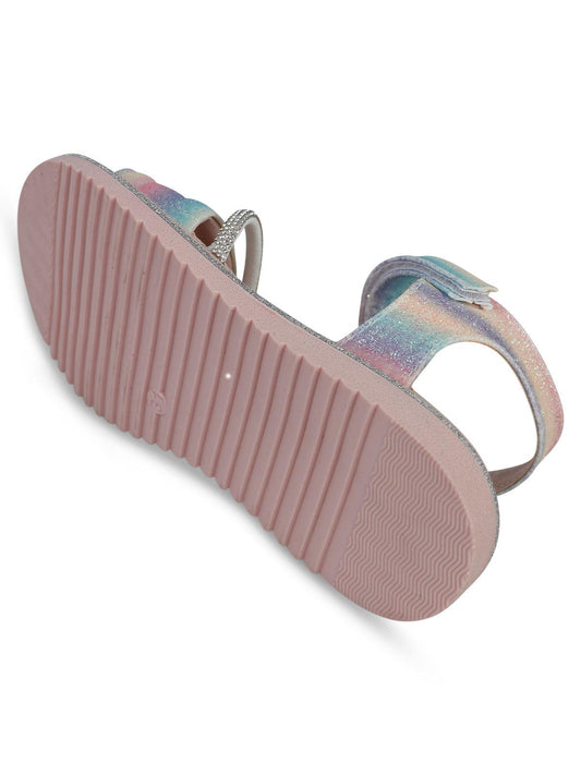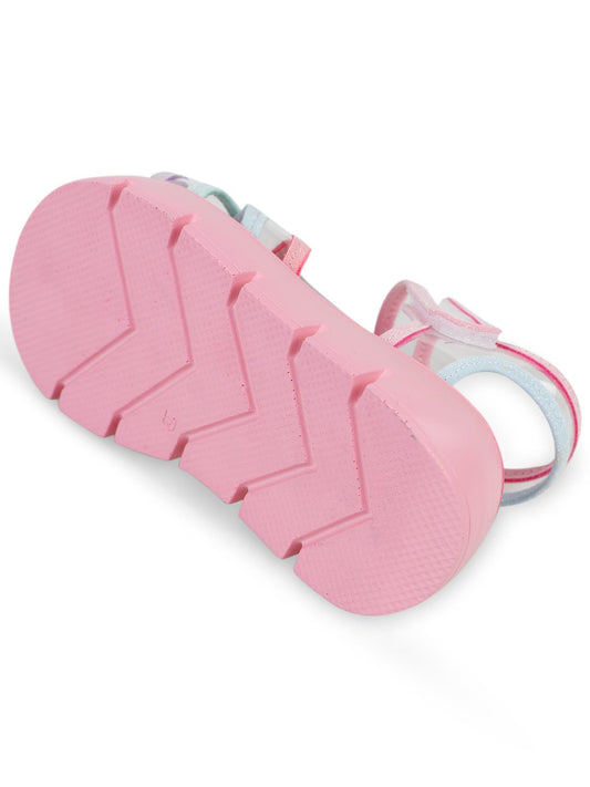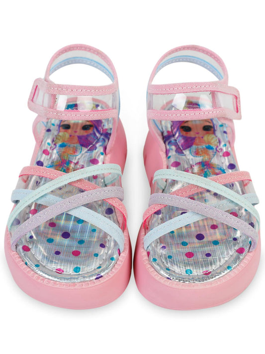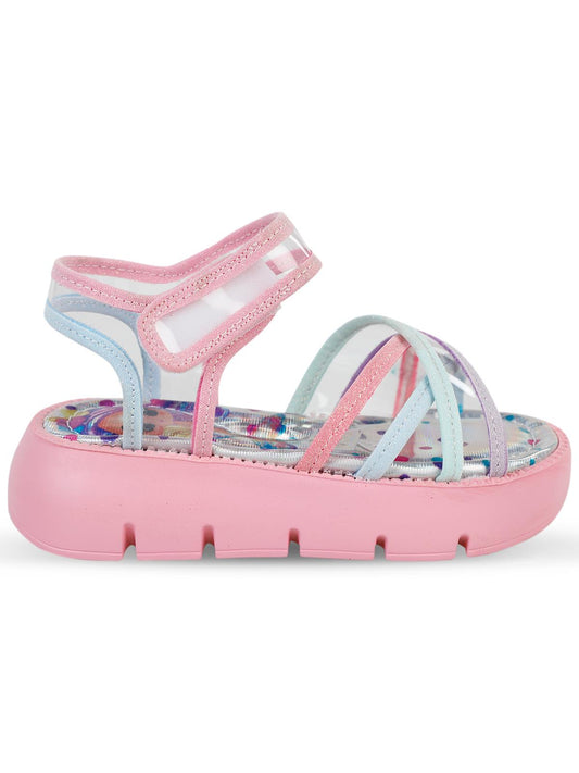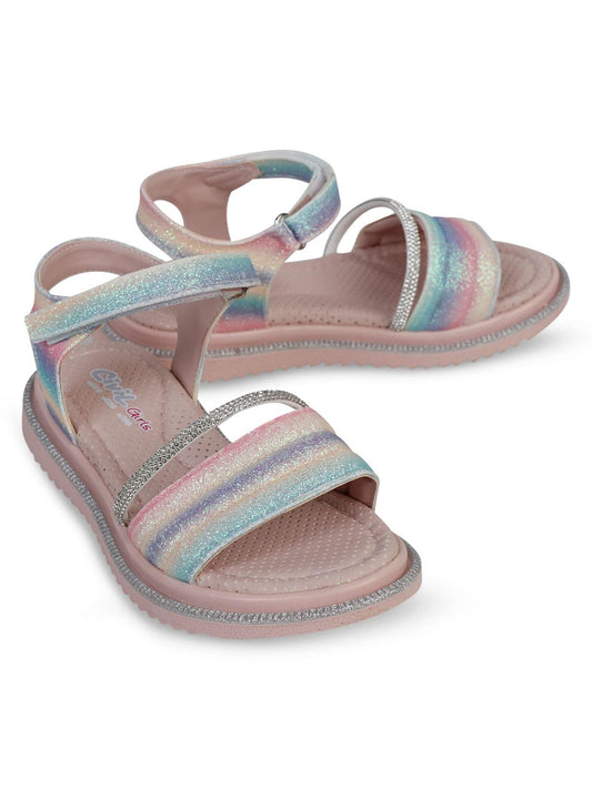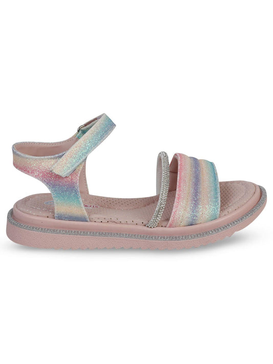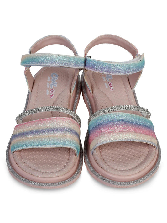 Civil girls gökkuşağı baskılı 20-24 numara sandalet - pudra