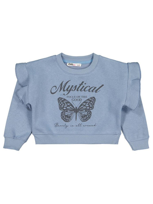• Civil girls kelebek baskılı 6-9 yaş sweatshirt - mavi