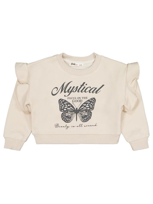 • Civil girls kelebek baskılı 6-9 yaş sweatshirt - bej