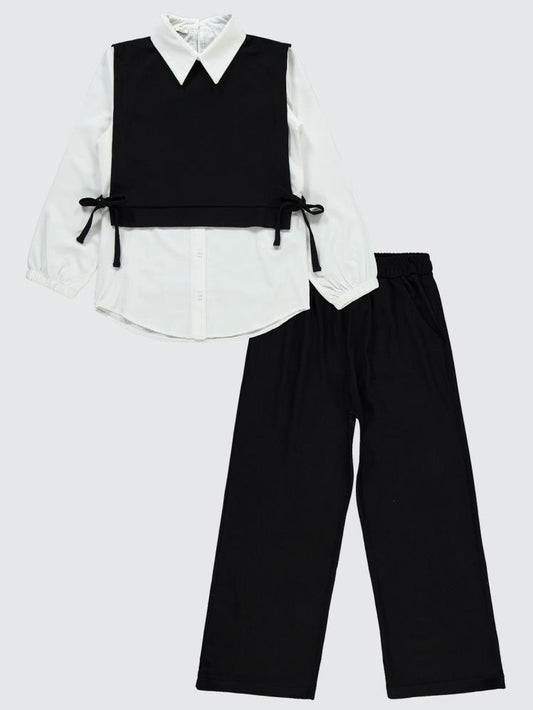 Civil girls kolu fırfırlı 6-9 yaş takım - siyah