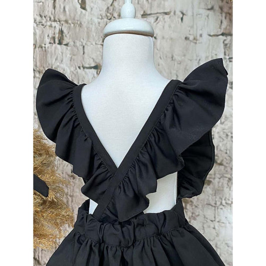 Shecco babba askıları fırfırlı kız çocuk elbise bandana takım 6-10 yaş - siyah