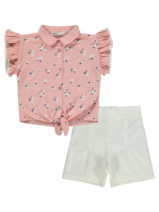 Civil girls çiçek baskılı 2-5 yaş takım - pudra