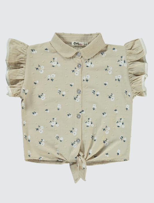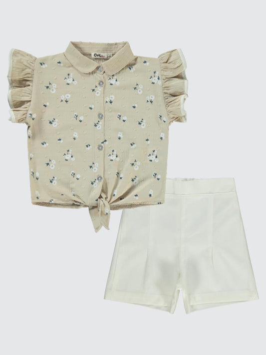 Civil girls çiçek baskılı 2-5 yaş takım - bej