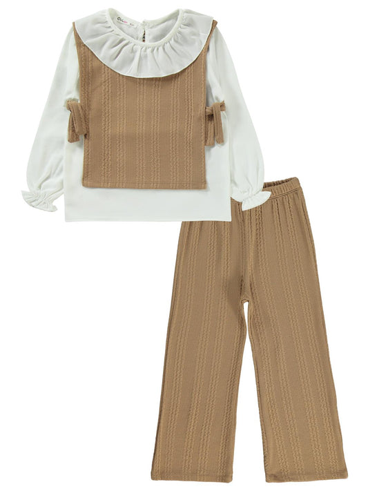 Civil girls fırfır yakalı 2-5 yaş takım - bej