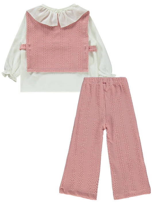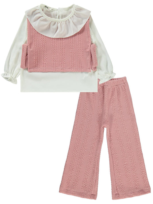 Civil girls örgü desenli 2-5 yaş takım - pudra