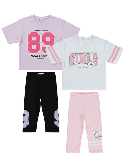 Civil girls sport girl baskılı kısa kol 2'li set 6-9 yaş takım