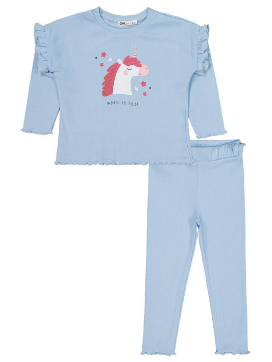Civil girls unicorn baskılı 2-5 yaş takım - ekru