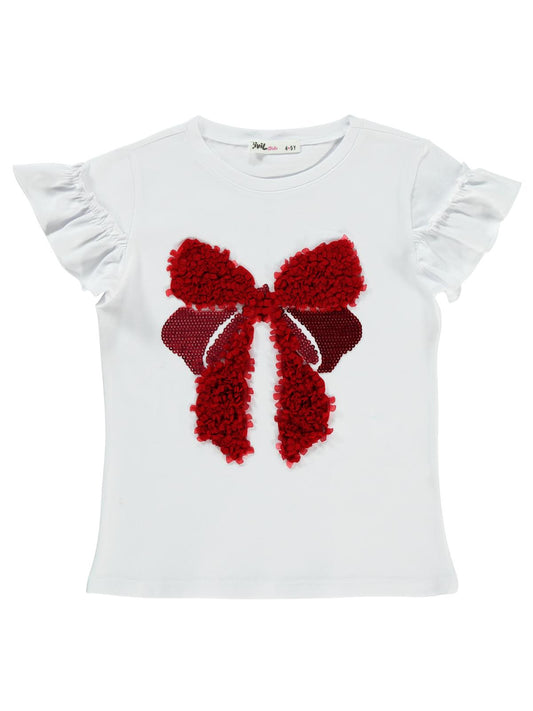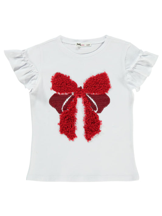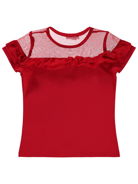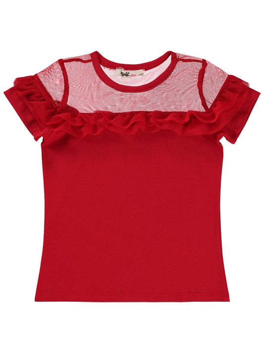 Civil girls fırfır tüllü 4-9 yaş tişört - kırmızı