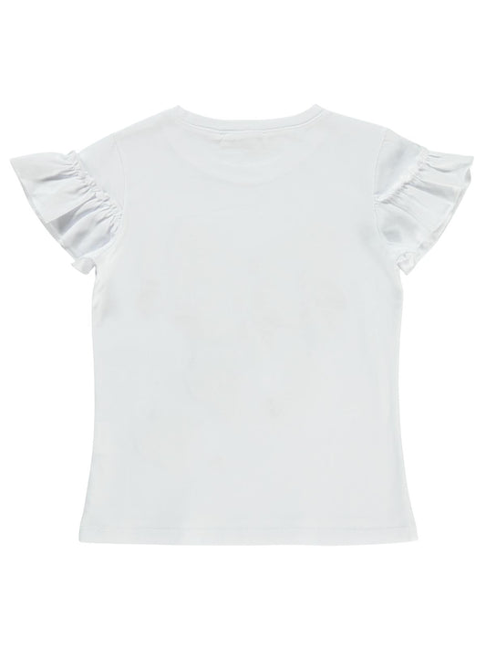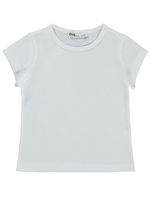 Civil girls fiyonk lase nakışlı 4-9 yaş tişört - beyaz