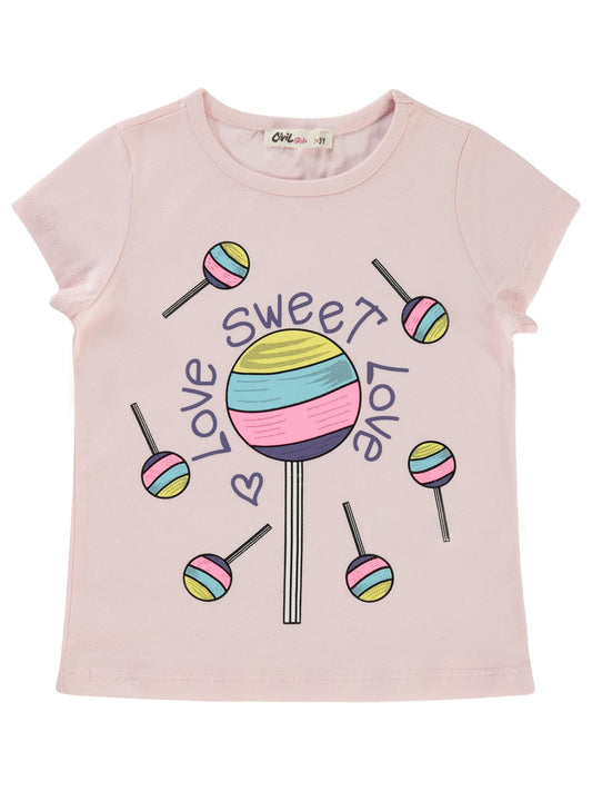 Civil girls şeker baskılı 2-5 yaş tişört - pembe