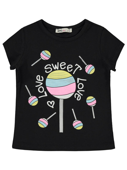 Civil girls şeker baskılı 2-5 yaş tişört - siyah
