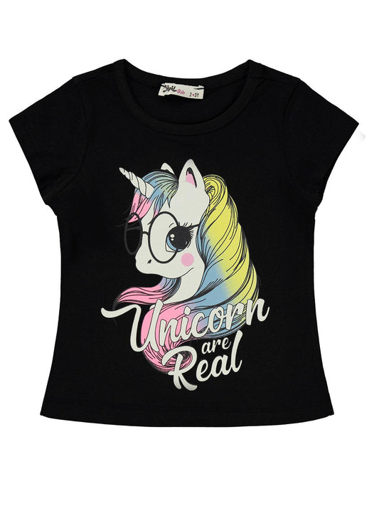 Civil girls unicorn baskılı 2-5 yaş tişört - siyah