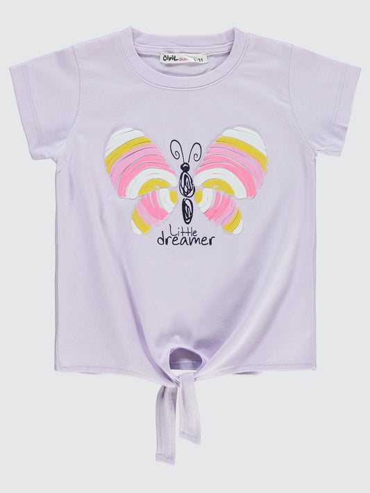 Civil girls kelebek baskılı 2-5 yaş tişört - lila