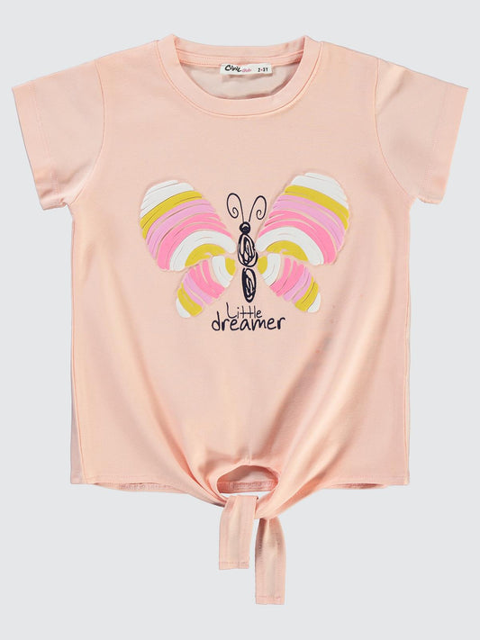 Civil girls kelebek baskılı 2-5 yaş tişört - pudra