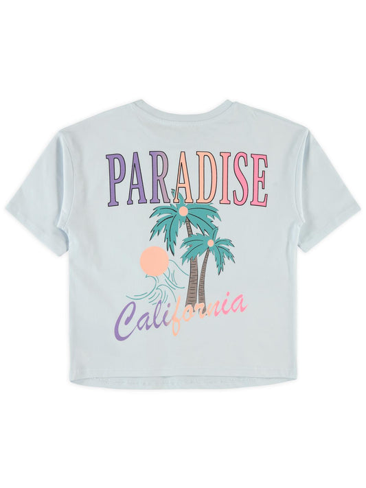 Civil girls palmiye baskılı 10-13 yaş tişört - beyaz