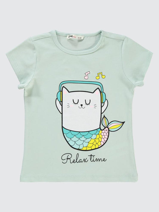 Civil girls kedi baskılı 2-5 yaş tişört - yeşil