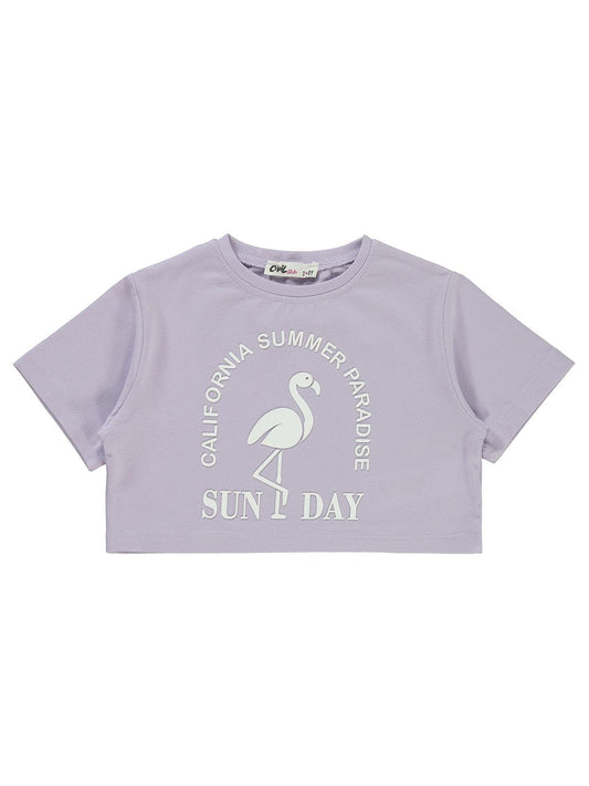 Civil girls flamingo baskılı 6-9 yaş tişört - lila