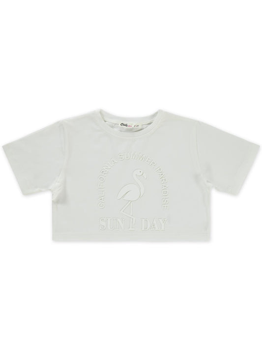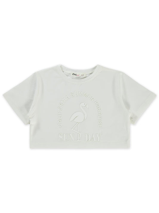 Civil girls flamingo baskılı 2-5 yaş tişört - ekru
