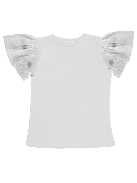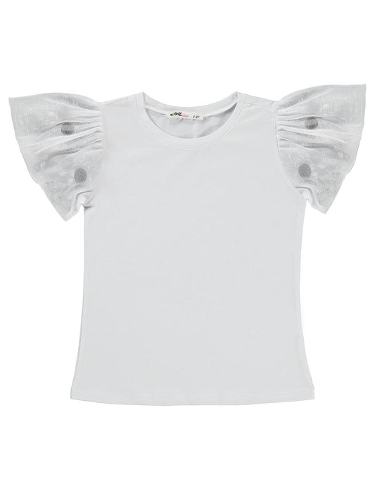 Civil girls kolu ponponlu 4-9 yaş tişört - beyaz