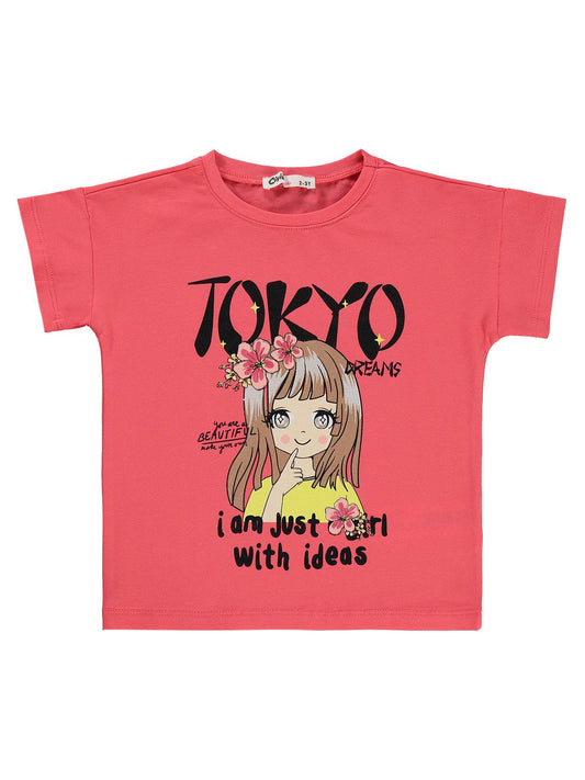 Civil girls tokyo baskılı 2-5 yaş tişört - kırmızı